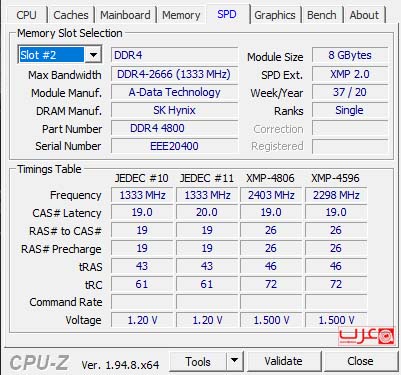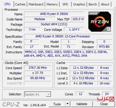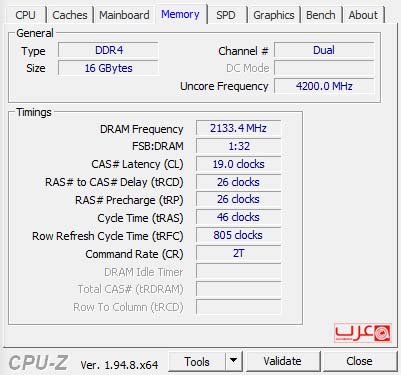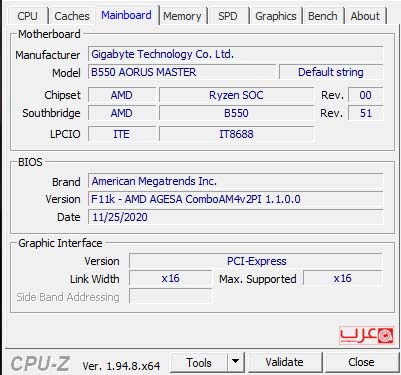 وبيانات معالج انتل واللوحة محل الاختبار كالتالي: