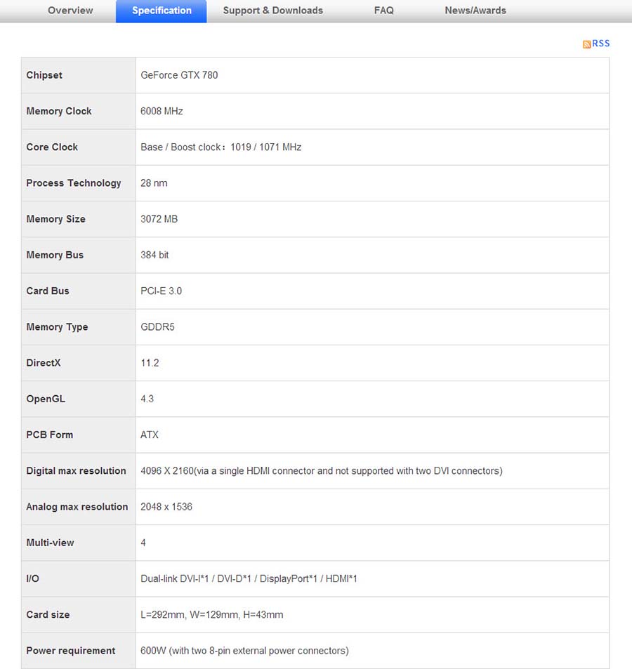 موديل GV-N780OC-3GD rev. 2.0 وهي صورة طبق الأصل من السابقة GV-N780OC-3GD وبنفس التردد مكسور السرعة مصنعياً الذي يبلغ BASE:954MHz / BOOST:1006 MHz لكن الفارق في دائرة الطاقة 8+2 phase VRM الأكثر أحترافية .