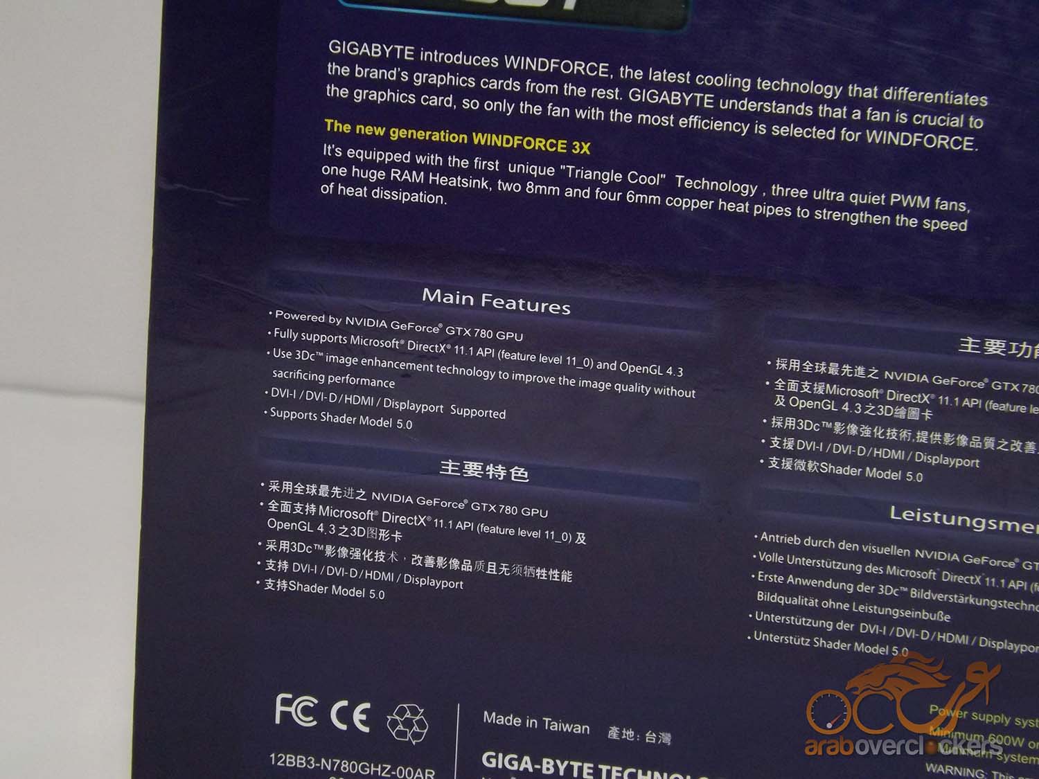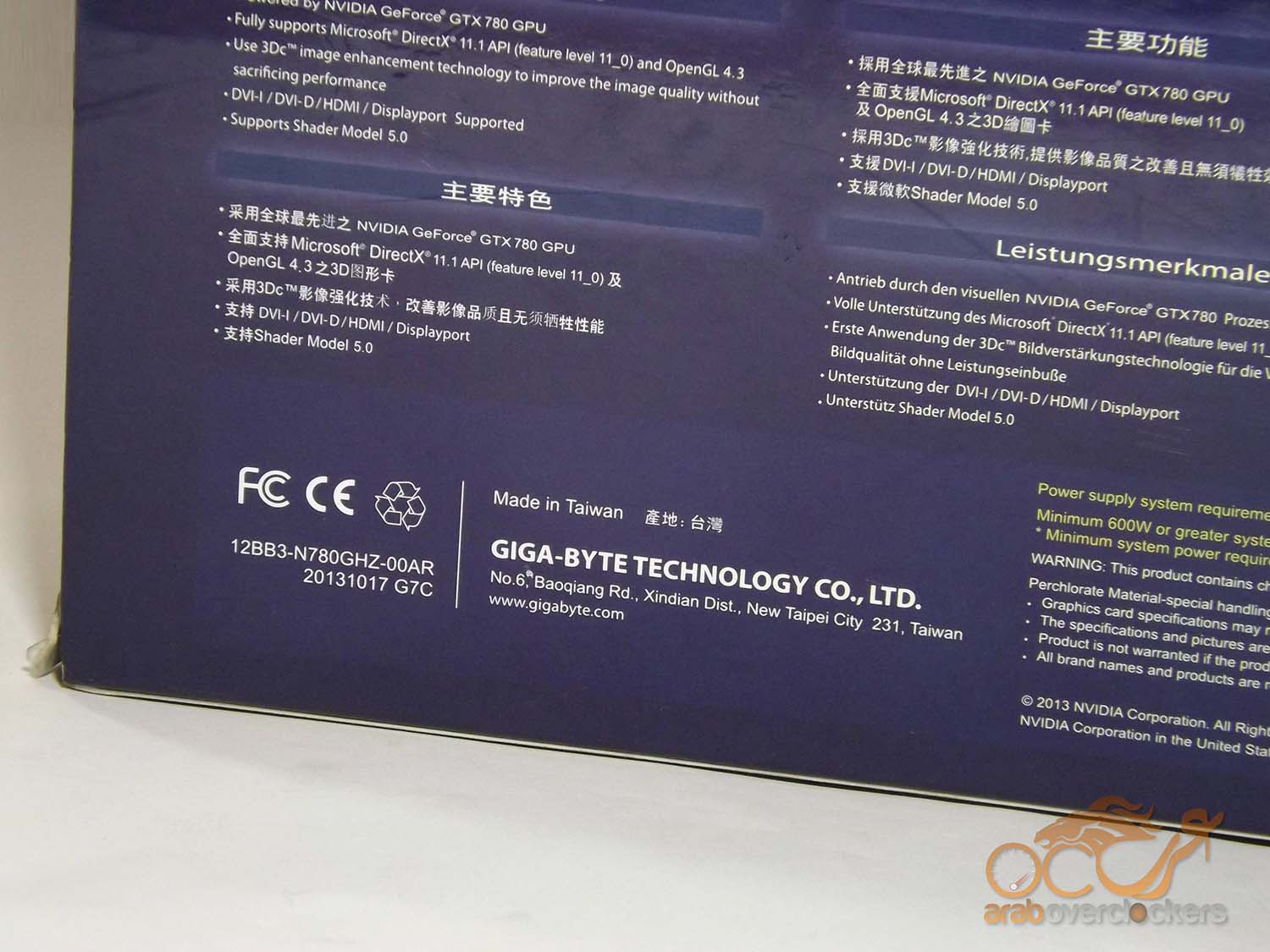 ويتبين لنا منها أن موديل البطاقة هو GV-N780GHZ-3GD كما سبق وأشرنا في البداية, قادمة للتوافق وشقوق توسعة PCI-E 3.0 وبحجم ذاكرة 3جيجابايت وبعرض ناقل 384bit.