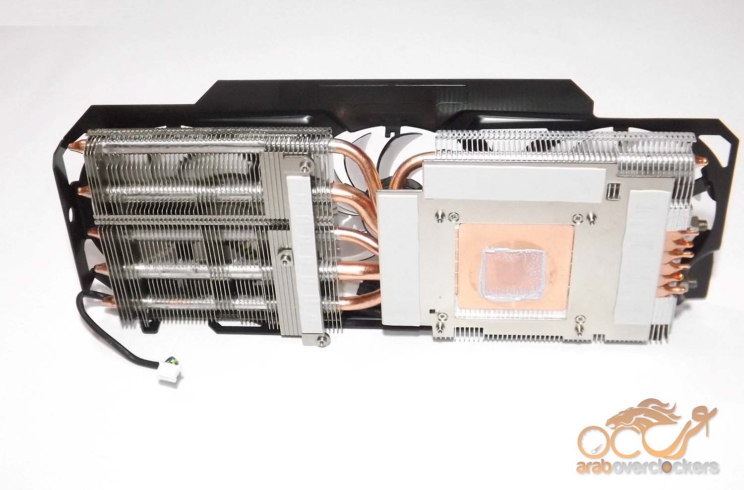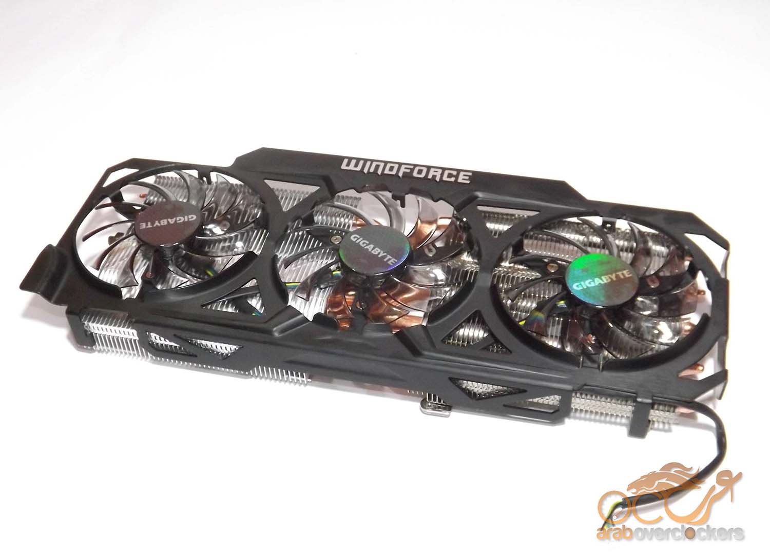 المشتت القوي من Gigabyte بعد أن تم فصله عن البطاقة, تعلوه 3 مراوح بقياس 80mm.
