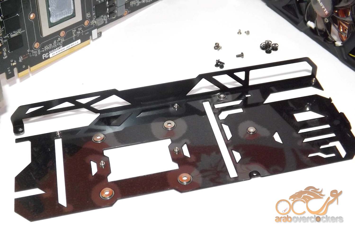 الرقم التسلسلي للبطاقة مُلصق علي اللوحة المعدنية الخلفية, وطبعاً انابيب تشتيت الحرارة والتي سيسأل البعض كيف اننا نري 5 فقط ومدون علي العُلبة ان العدد6؟