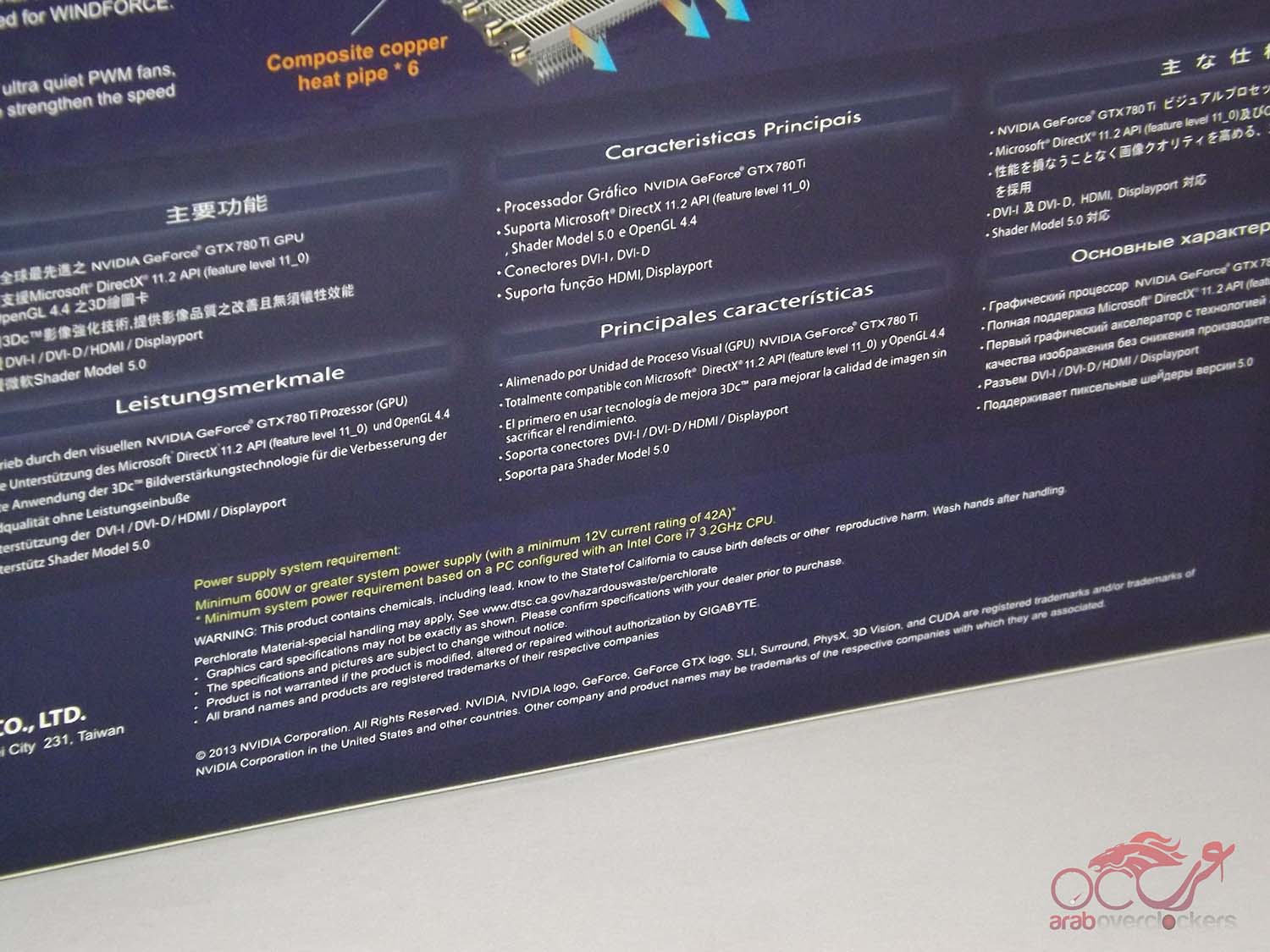 متطلبات تشغيل البطاقة من حيث مزود الطاقة, علي الأقل تنصح GIGABYTE بمزود طاقة 600W علي الأقل, مع بعض التنبيهات التي لن تفيدنا في شئ كمثلاً ان تغسل يدك بعد أن تنتهي من أستخدام قطعة الهاردوير في العبوة oO.