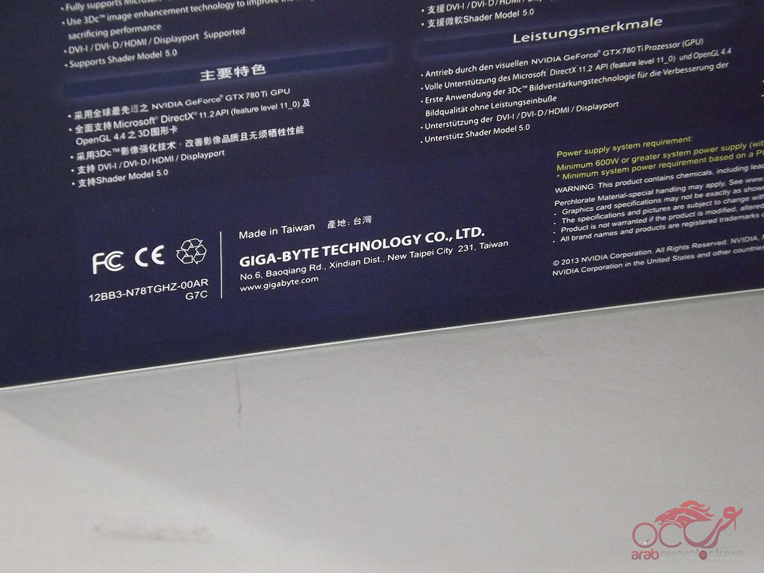 ويتبين لنا منها أن موديل البطاقة هو GV-N78TGHZ-3GD كما سبق وأشرنا في البداية, قادمة للتوافق وشقوق توسعة PCI-E 3.0 وبحجم ذاكرة 3جيجابايت وبعرض ناقل 384bit.