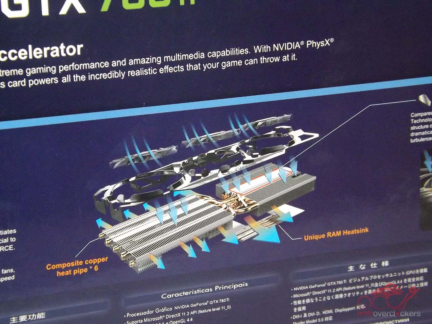 تصميم WINDFORCE 3X 450W المكون من 6 انابيب حرارة سنراها بمجرد الوصول لصور البطاقة نفسها. حتي شرائح الذاكرة نالها نصيب من الأهتمام في حل التبريد هذا بجزء معدني سنراه مع صور البطاقة.