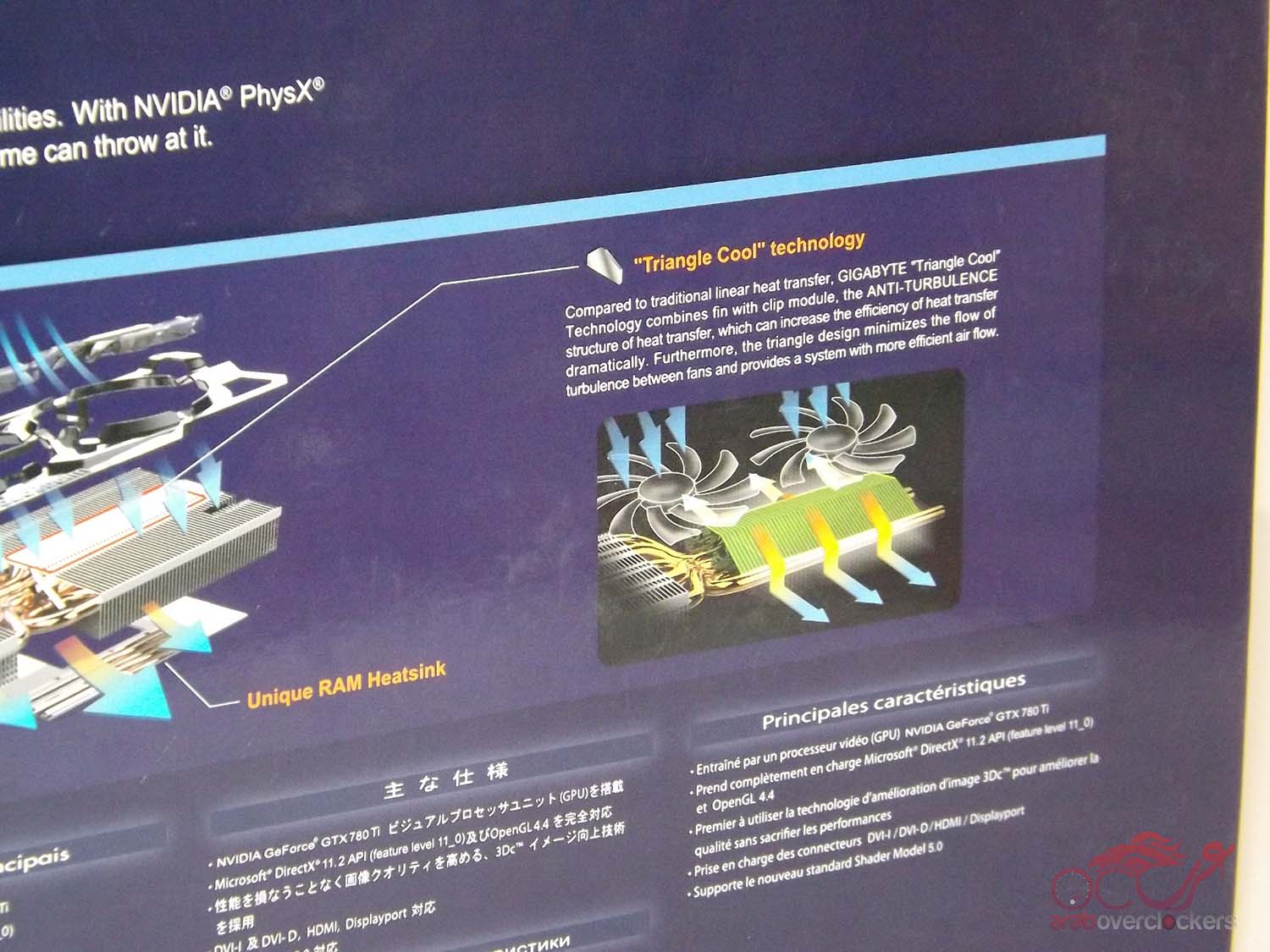 تقنية Triangle Cool التي ابتكرتها GIGABYTE والتي تساهم في تشتيت أفضل للحرارة بفضل الشكل المشابه للمثلث لتساعد انسيابية التصميم في طرد الهواء الساخن بصورة أسرع.