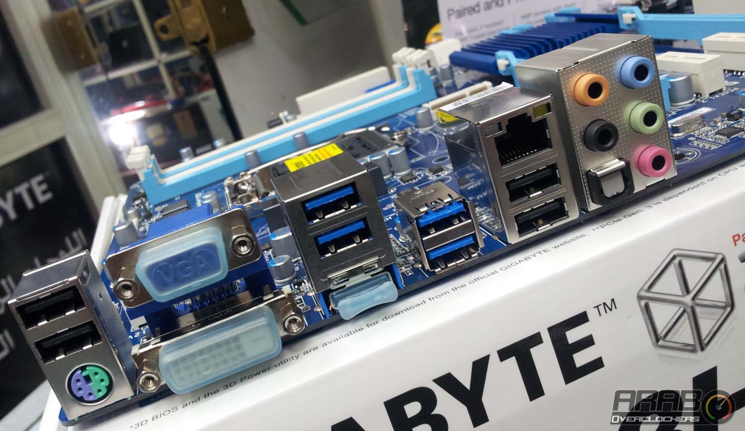 وبالاسفل نجد مقبس تزويد اللوحة بالطاقة 24 بن (ابرة) ، وهذا المقبس معياري في جميع اللوحات الام. ونرى اعلى مقبس تزويد اللوحة بالطاقة منفذ USB 3 اضافي للتوصيل .