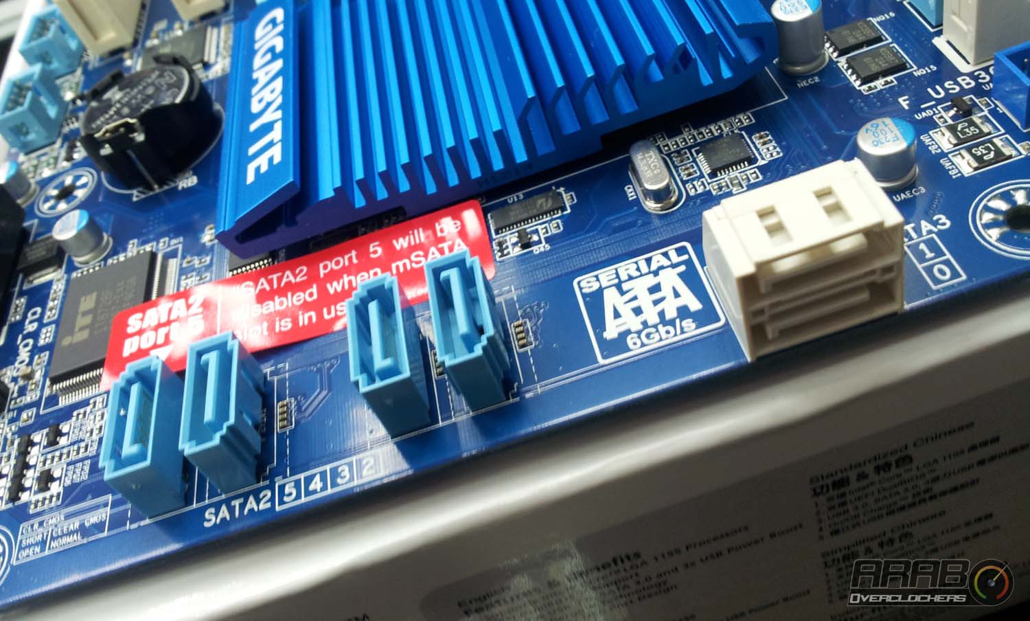 تحتوي اللوحة على ستة فتجات من الجيل الثالث SATA 3 /6Gb/s ، اعتقد كان يمكن اضافة فتحتان اضافيتان للحصول على سعة تخزين اكثر خصوصا وان حجم البيانات اخذ في الزيادة هذه الايام مما يضر المستخدم الى تركيب اقراص تخزين اضافية .