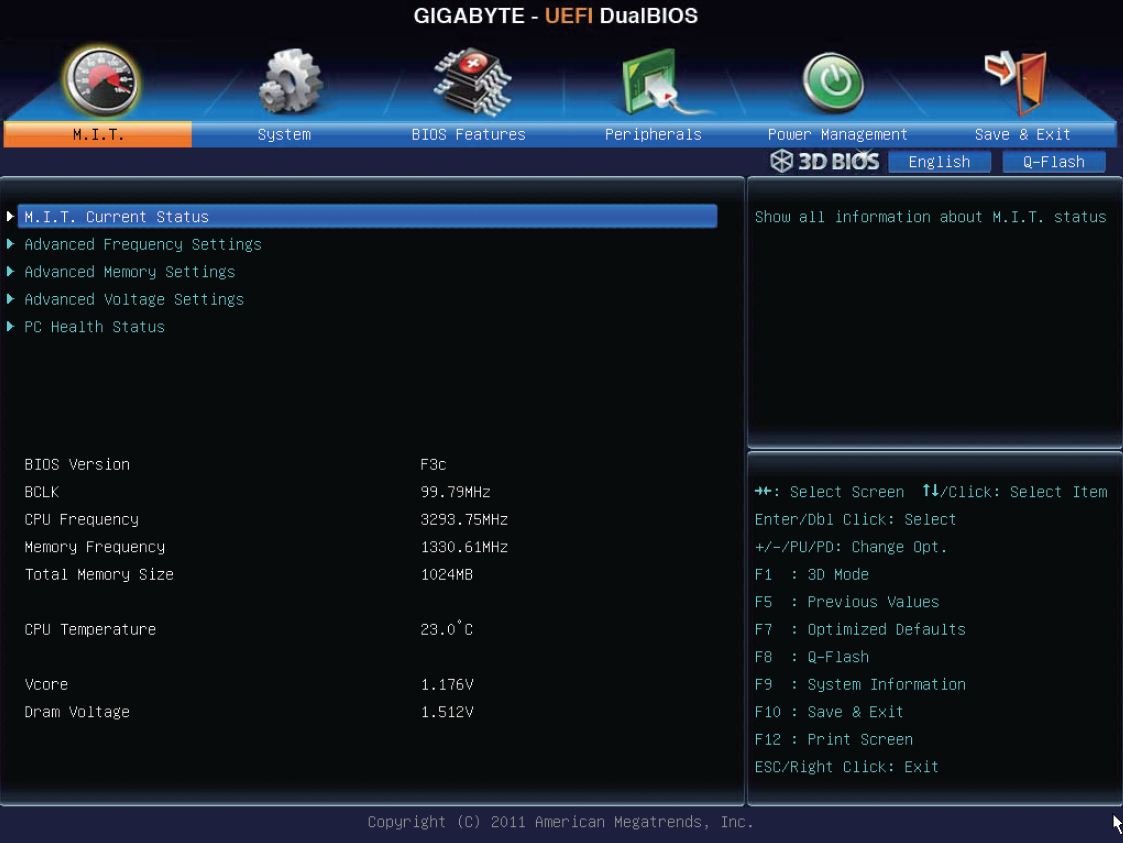 عند الولوج لل BIOS نجد انفسنا عن اول عنوان وهو M.I.T ومن خلال هذا التبويب نرى معلومات البيوس بالاضافة الى خيارات سرعة المعالج والذواكر والفولتية ، التي يمكن التحكم من خلالها في ضبط كل خيار على حدة .