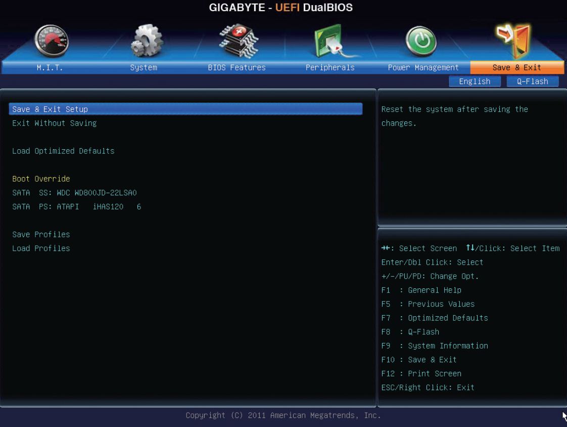 واخيرا نصل الى بند Save & Exit والذي من خلاله نقوم بحفظ التعديلات ومن ثم الخروج .