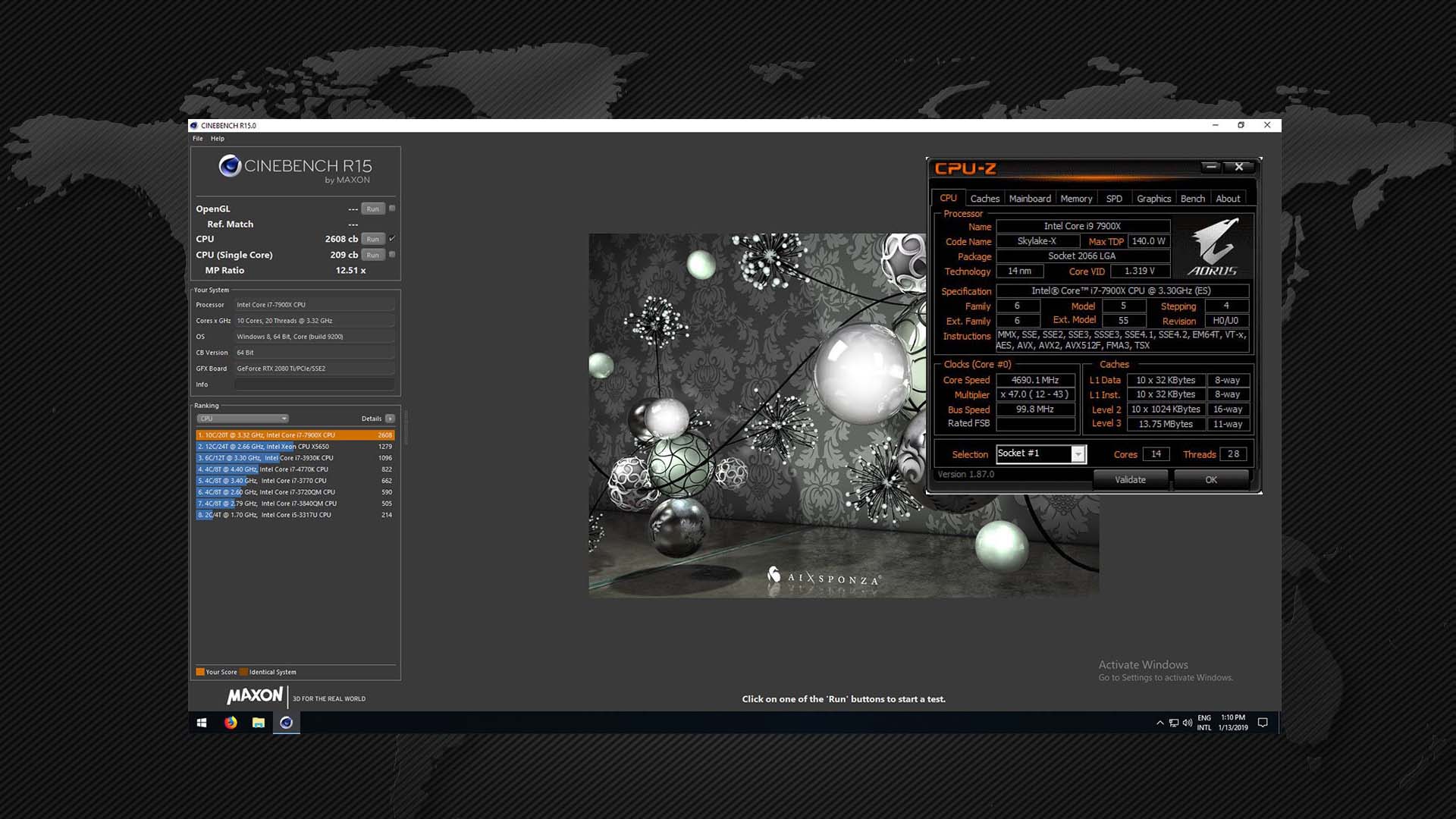 حقق معالج Core i9-7940X عند 2608 نقطة تقريبًا، واتاح لنا كسر سرعة كل الانوية إلى تردد 4690 ميجاهيرتز تحقيق هذه النتيحة.