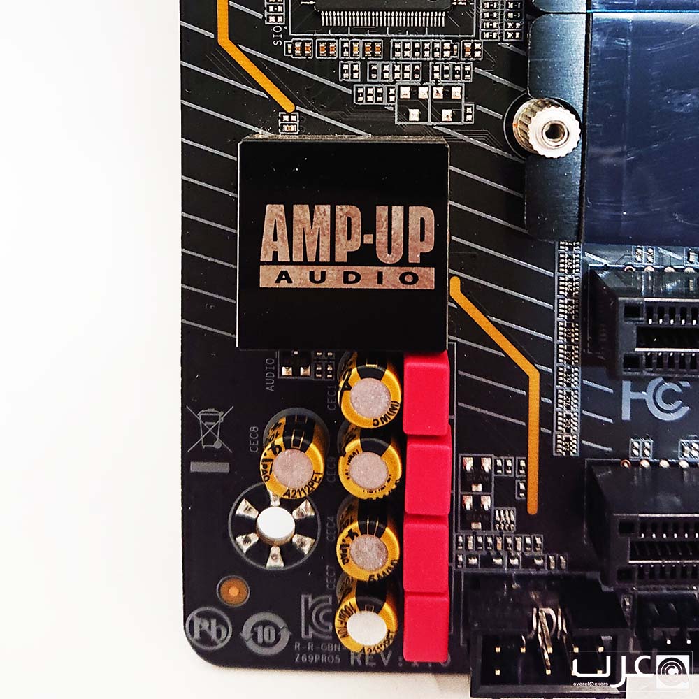تفصل Aorus في لوحتها Z690 Aorus Pro قسم الصوت باكمله لعزله عن الضوضاء الكهربائية الناتجة عن المكونات القريبة. هذه ممارسة قياسية للمصنعين الذين يهتمون بجودة دعم الصوت على اللوحة. وبدون عزل مكونات الصوت، يمكن إدخال ضوضاء كهربائية غير مقصودة في خط الصوت مما ينتج عنه تشويش وأصوات ثابتة.
