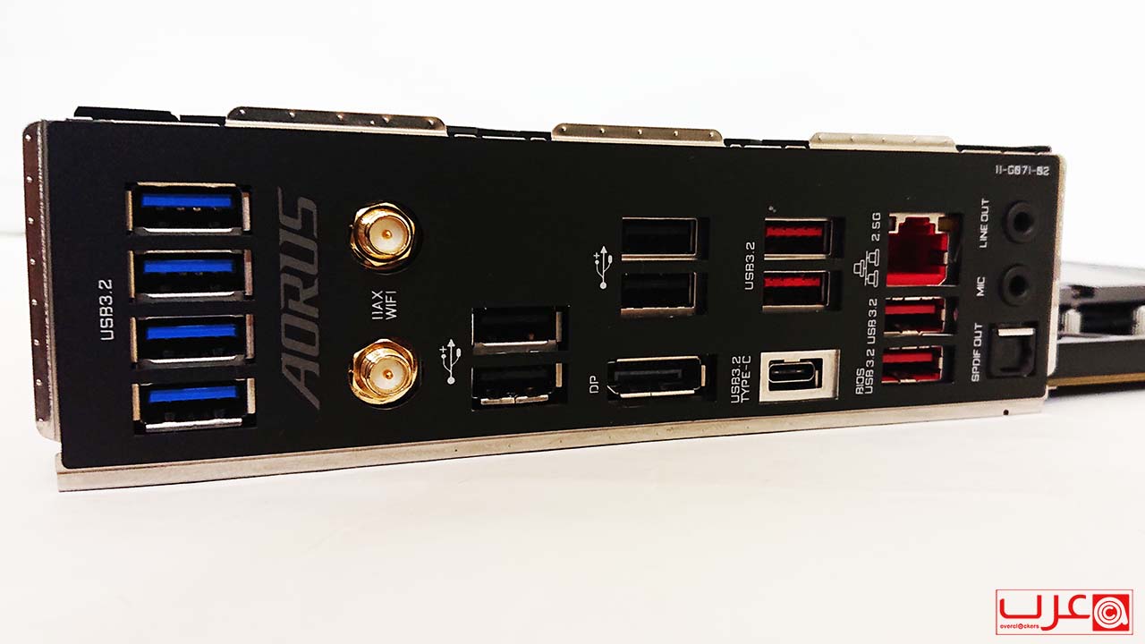 تعد لوحة الإدخال/الإخراج دائمًا جزءًا مثيرًا للاهتمام من اللوحة الأم لأنها تحدد خيارات الاتصال التي ستكون متاحة. وبدءًا من اليسار، لدينا أربعة منافذ USB 3.2 متبوعة بوصلتي هوائي WiFi. وستجد ما مجموعه أربعة منافذ USB 2.0 إلى جانب أربعة منافذ USB 3.2 Gen 2 أخرى ووصلة واحدة من النوع C. يتعامل منفذ Display Port واحد مع الفيديو الموجود على اللوحة بينما يمكن لاتصال 2.5G Ethernet التعامل مع الشبكة.