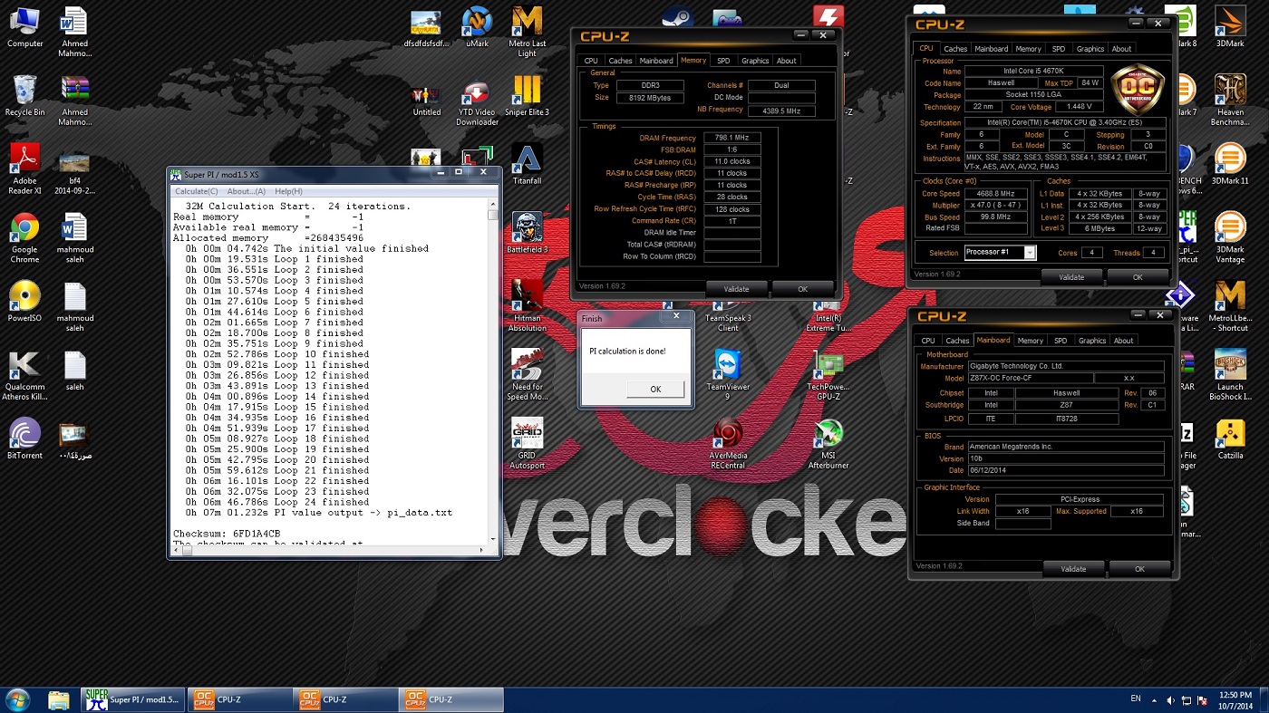 وتم الوصول بمعالج I5 4670K إلى تردد 4.7GHz تقريباً باستخدام تبريد هوائي بثبات تام وباستخدام الأربع أنوية كاملة.