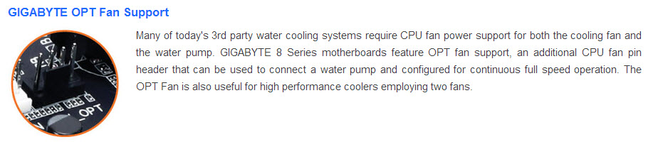 خصصت جيجابايت هذا المنفذ بجانب منفذ المروحة المخصص للمعالج ليتكون مهمته هي توصيل الطاقة لحلول التبريد التي تتطلب منفذ طاقة كمثلاً حلول التبريد السائلة تحتاج للطاقة من أجل تشغيل المضخة فلا يضطر المستخدم لأن يذهب لأي منفذ بعيد عن المعالج وهو أمر مفيد جداً خصوصاً حال كان المستخدم مهتم بتنظيم الكيبلات داخلل الصندوق. والشئ الأخر هنا هو إمكانية استخدامة للمبردات الهوائية التي تأتي بأكثر من مروحة الغالبية يأتي بأثنين معاً ليتم توصيل كل مروحه علي حدي.