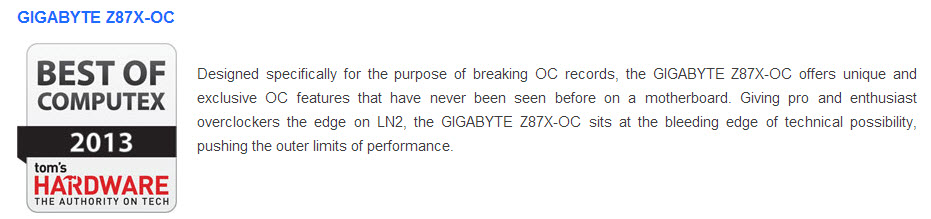 اللوحة حصلت علي جائزة أفضل ما كان في معرض Computex 2013 من موقع Tom’s Hardware الشهير.