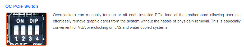 هذه الميزة حقاً رائعة وقادرة علي فصل شقوق الPCIe الأربعة في اي وقت دون الحاجة لخلع البطاقة فعلياً طبعاً هذا الأمر تظهر اهميته حال كان المستخدم قد وضع أكثر من بطاقة وبدللاً من بذل المجهود في خلع احداهم يمكنه بتحريك المفتاح فصله وكأنه غير موجود.
