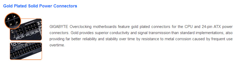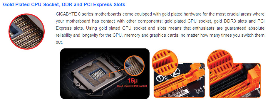 وحتي لسنون شقوق الذواكر وشقوق التوسعة بل وسنون مقبس المعالج تم الأستعانة بسنون مطلية بالذهب ما يدل علي أن جيجابايت استخدمت افضل شئ لضمان افضل أداء ولضمان أعتمادية لفتره اطول ما يمكن.
