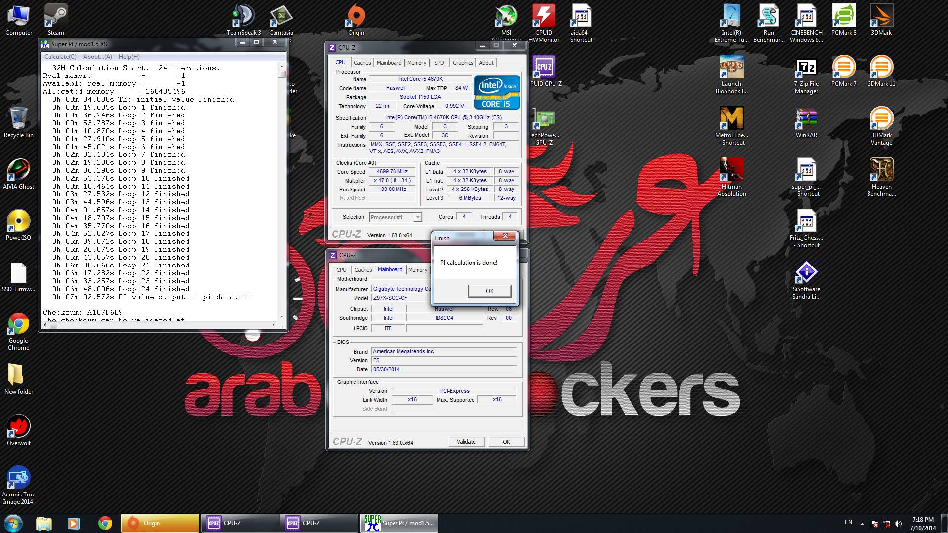 تم الوصول بمعالج I5 4670K إلى تردد 4.7GHz باستخدام تبريد هوائي بثبات تام وباستخدام الأربع أنوية كاملة.