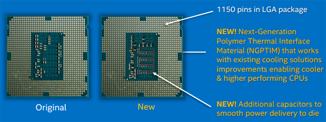 معالجات Devil’s Canyon – وادي الشيطان – وهي الفئة K من معالجات Haswell المحدثة ولكن INTEL فضلت أن تطلقها تحت مسمي منفصل .التى تأتى لتعديل بعض نواقص الجيل السابق مما يجعلها أقرب للكمال . فيستبدل المعالج المادة الحرارية TIM بالمادة الجديدة التى أسمتها الشركة NGPTIM -إختصارآ لـ Next Generation Polymer Thermal Interface Material- والتى ينتظر أن تحسن من درجات الحرارة الخاصة بالمعالج. ولم تكتفي إنتل بذلك فقد أضافت إنتل بعض المكثفات على ظهر المعالج لتحسن من تنظيم الطاقة الداخلة للمعالج .