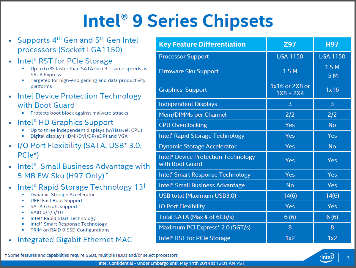 الشريحة Z97 تنطوي تحت الجيل التاسع من شرائح Intel وهي الأخت الكبري لذاك الجيل . وهو الجيل المعلن إطلاقه مع إطلاق معالجات Devil’s Canyon.
