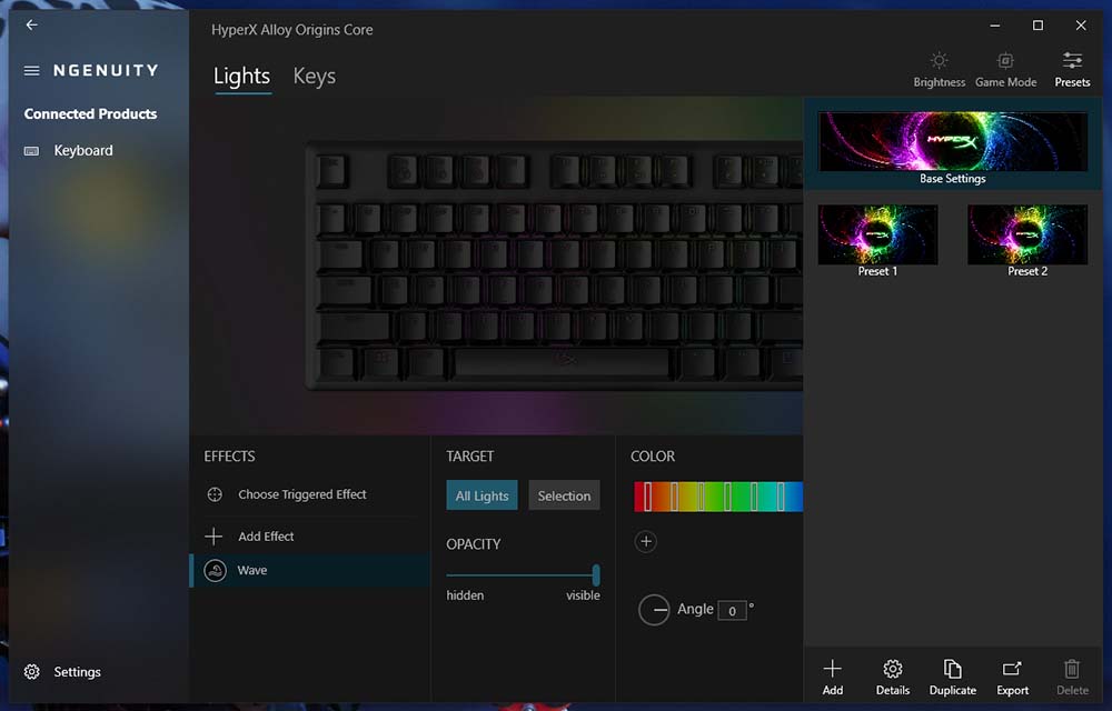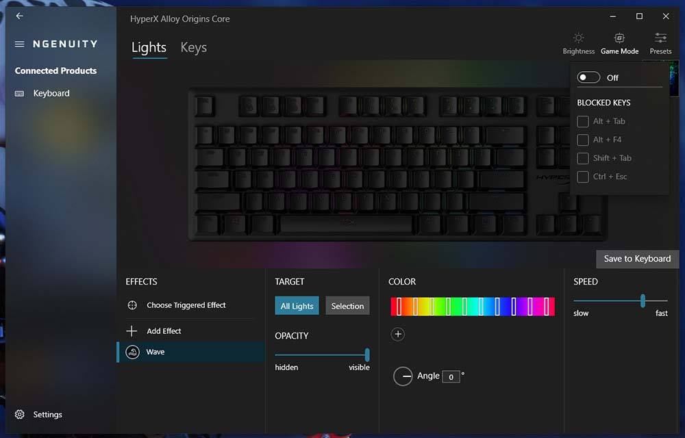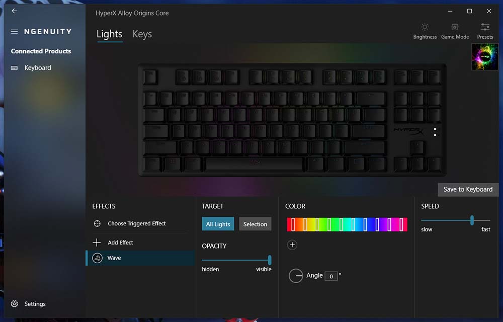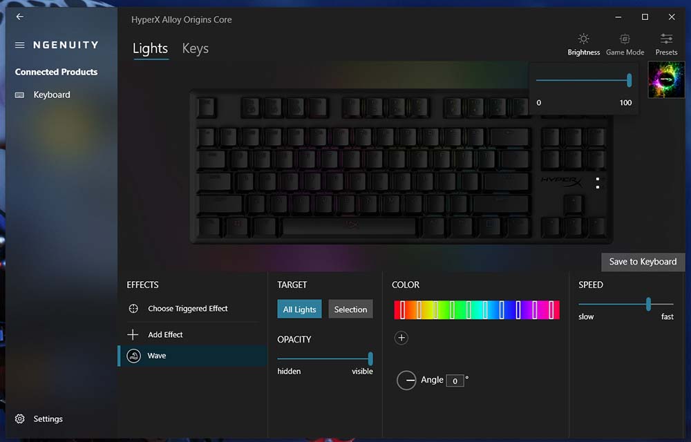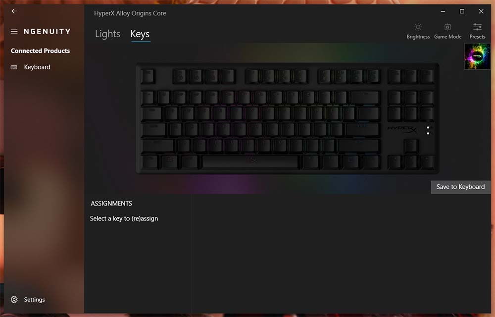 باستخدام تطبيق HyperX NGENUITY، يمكنك تخصيص وضع اللعب والتحكم في إضاءة لوحة المفاتيح وإعداد وحدات الماكرو.
