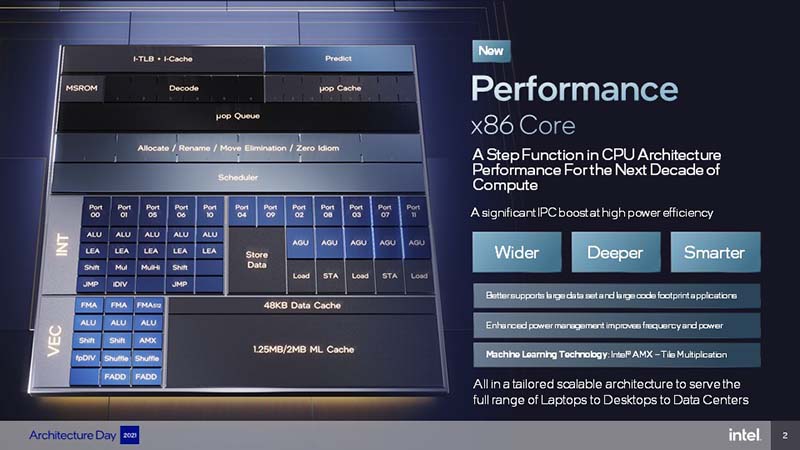 من خلال الانوية الفعالة وأنوية الأداء الأساسي، تنتقل إنتل إلى أكبر تحول معماري في تاريخ معالجات x86. فلقد تم تصميم البنية الدقيقة ذات الاتوية الفعالة من أجل كفاءة الإنتاجية والتفريغ الفعال للمهام الخلفية لتعدد المهام. فهي تعمل بجهد منخفض وتخلق حيزًا مرتفعًا لزيادة التردد وزيادة الأداء لأعباء العمل الأكثر تطلبًا. ولقد تم تصميم البنية الدقيقة لانوية الأداء الأساسي للسرعة، وتعتبر أعلى انوية معالج بنتها إنتل أداءً. فهي تدفع حدود زمن الوصول المنخفض وأداء التطبيق أحادي المسار ونوفر تعزيزًا كبيرًا في كفاءة الطاقة العالية التي يمكن أن تدعم التطبيقات الكبيرة بشكل أفضل.