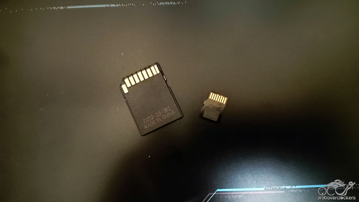 وها هي البطاقة بجوار محول SD المرفق معها.