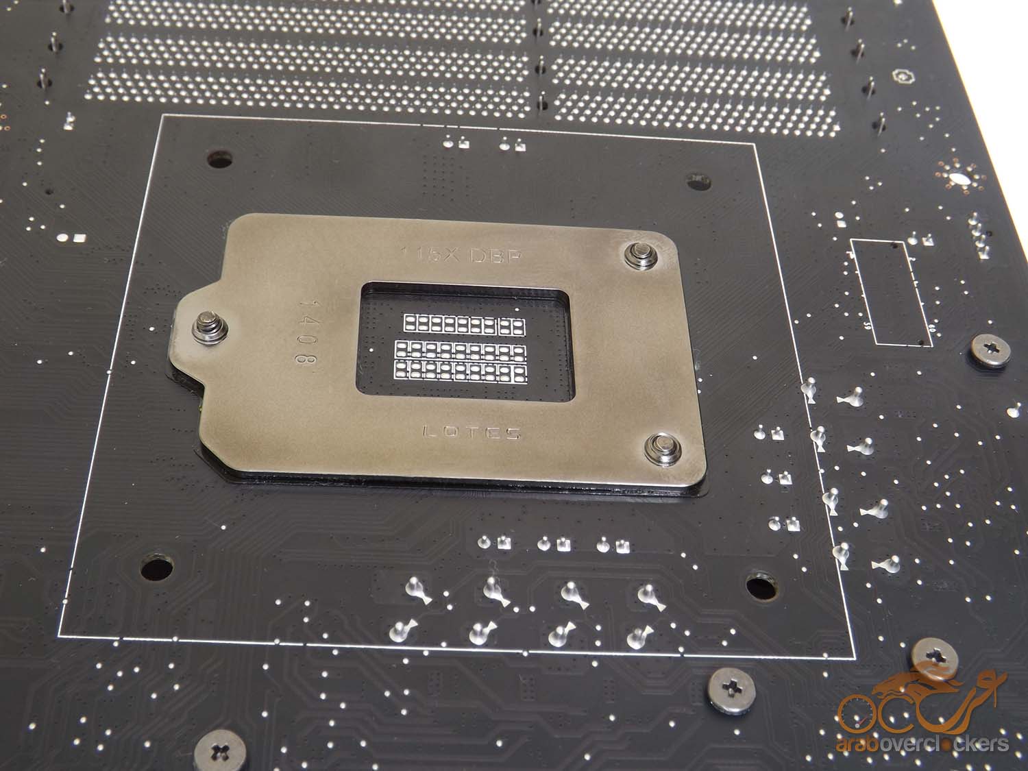 اما الجهة الخلفية لمقبس المعالج فلا تحتوي على الكثير سوى القطعة الحديدة الحامية والتي تقوم بمهمة تثبيت المقبس ايضا.