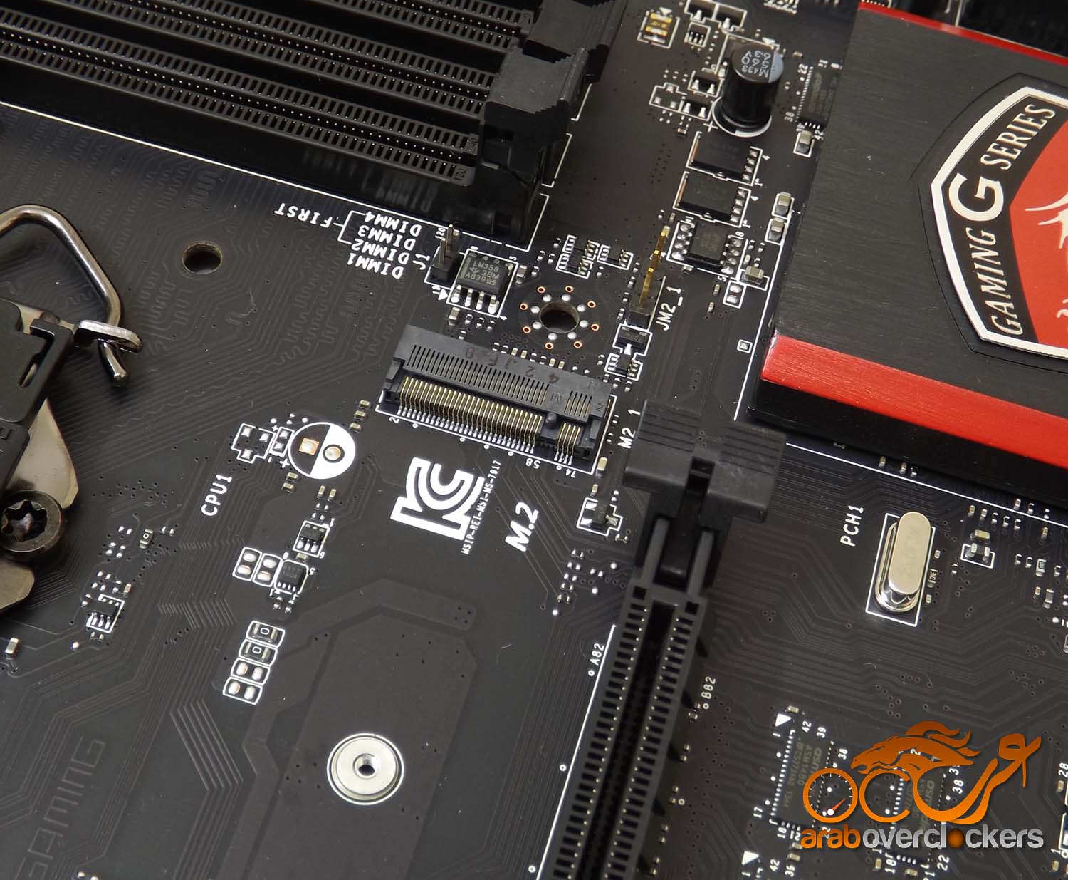 وتظهر لنا في الصورة التالية المنفذ الاسطوري الجديد M.2 SATA وسيظهر هذا المنفذ في اغلب لوحات الجيل الجديد، ويجب على المستخدم العلم ان استخدام هذا المنفذ يقوم بتعطيل منفذي SATA.