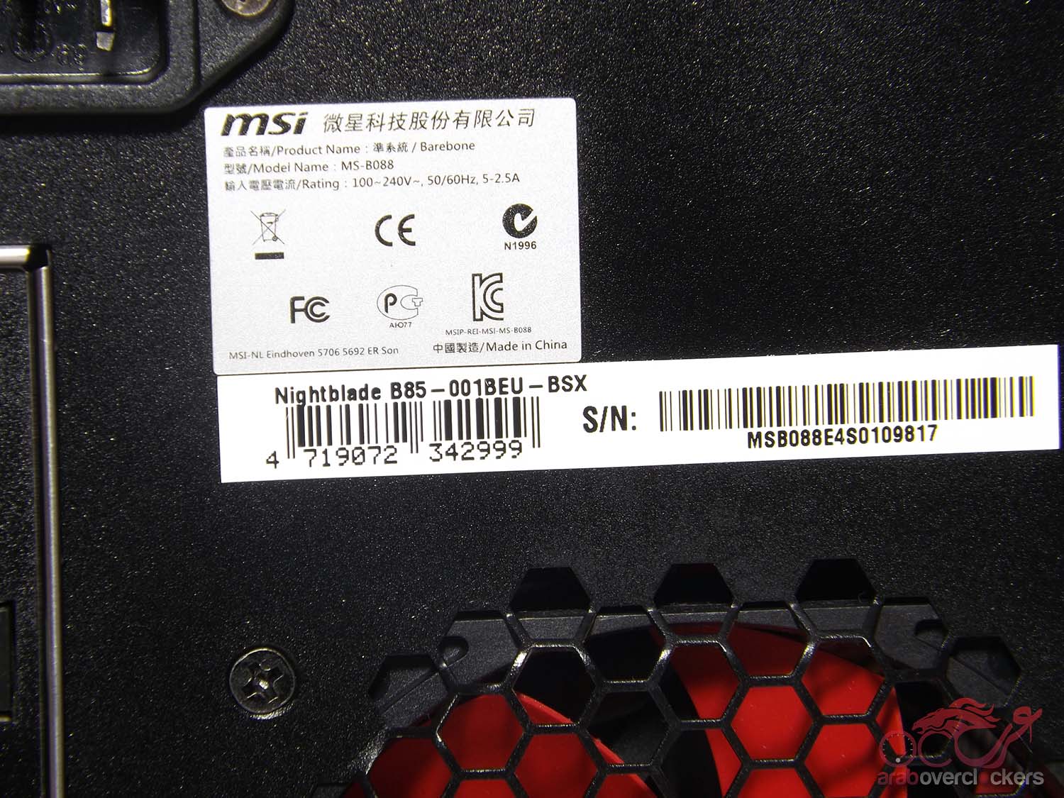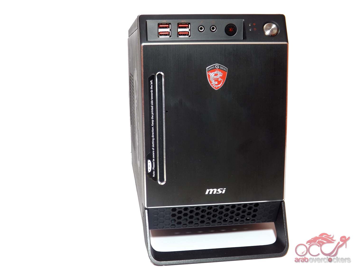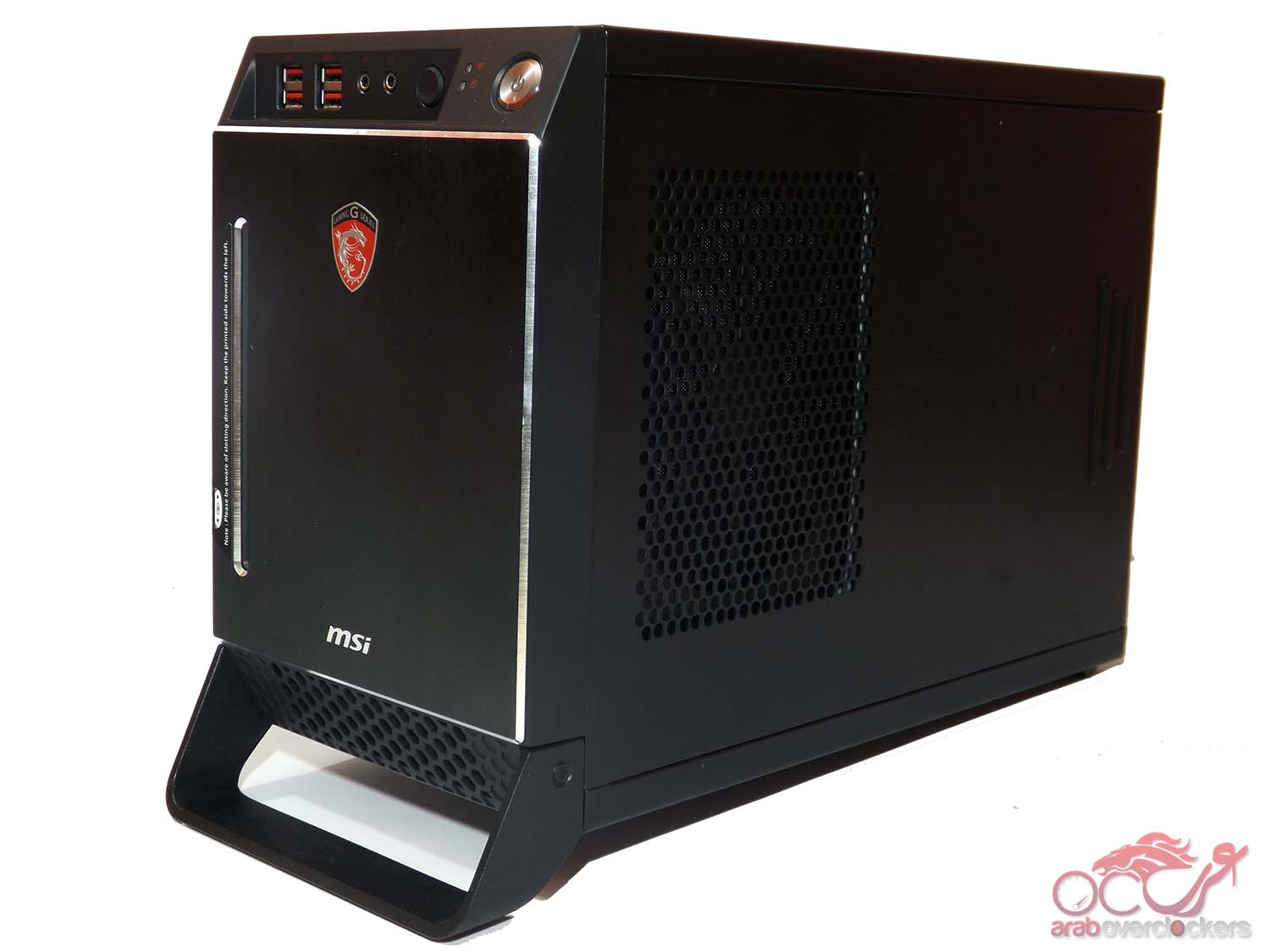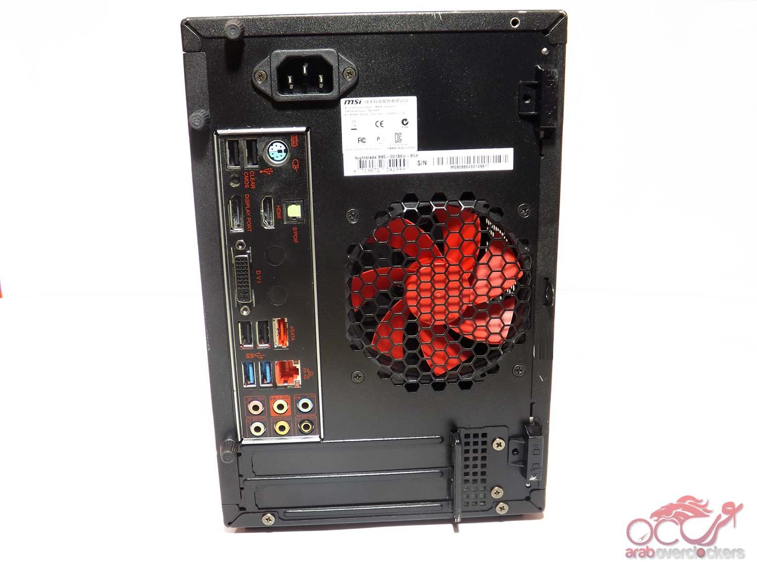 الصندوق من الجانب بعد نزع الغطاء نجد مزود الطاقة كما سبق وشرحنا وقد وجهت مروحته للجانب كي تأخذ الهواء وتضخه داخل المزود ومنه للصندوق, كما قامت MSI بتثبيت فلتر مضاد للأتربه كي يمنع مرور الأتربه لداخل المزود أو الصندوق.
