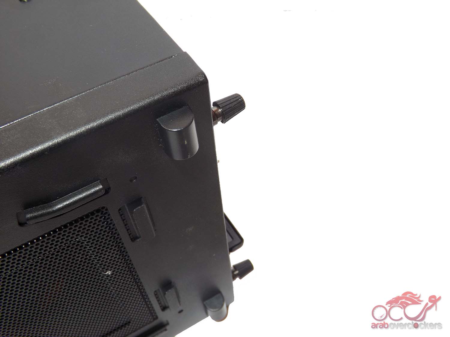الجانب الأيسر للصندوق نجده يحمل شعار التنين الخاص بمنتجات جمهور اللاعبين كما نري فتحة جانبيه تعمل علي تمرير الهواء إلي الداخل. طول الصندوق يبلغ 34.5سم.