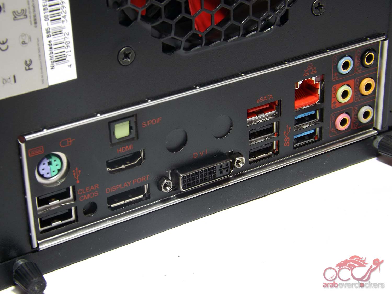 اللوحة المستخدمة هنا هي MSI B85I Gaming وحتي تمتلك من اليسار لليمين منفذين USB2.0 ومنفذ PS2 القديم والعتيق الذي لا أعرف ماذا يفعل هنا!!