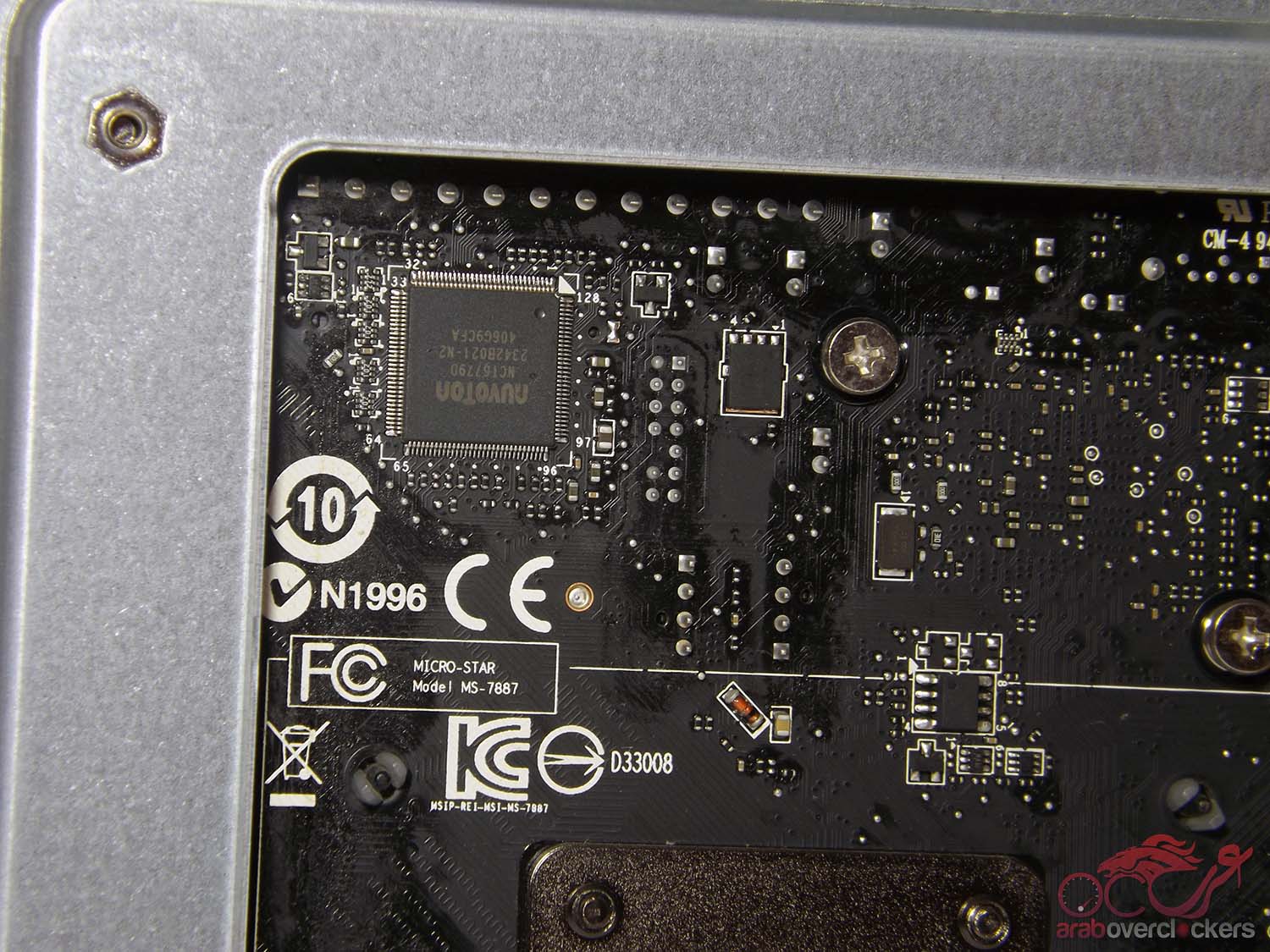 يظهر من الخلف شريحة nuvoton nct6779d والخاصة بمراقبة كافة البيانات الخاصة باللوحة من درجات حراره وفولتات كافة مكونات اللوحة كذلك سرعة المراوح.