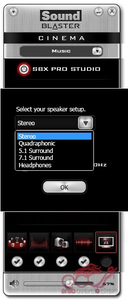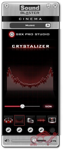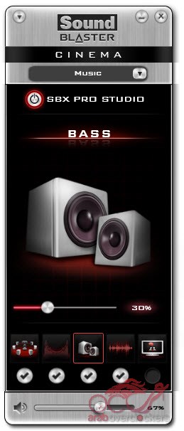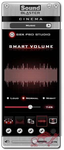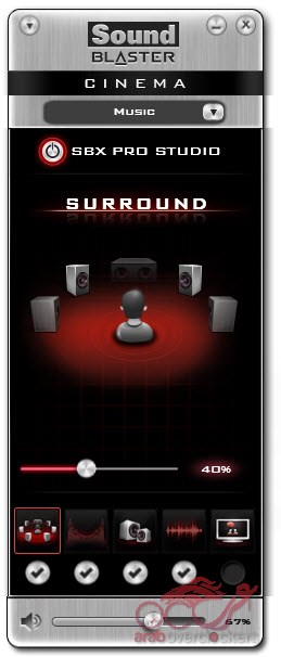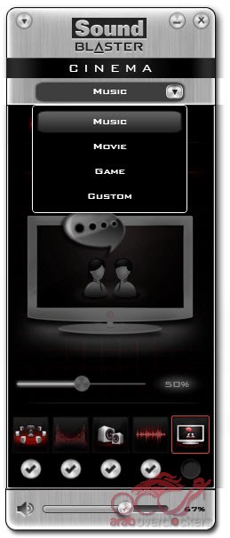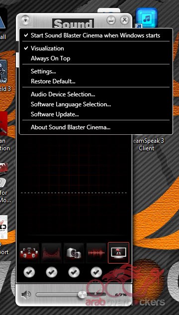 اللوحة الأم الموجوده بالصندوق تحوي في طياتها بطاقة صوتيه من Realtek بشريحة ALC1150 لكن مدعمة بحل برمجي ممتاز وهو Sound Blaster Cinema وفيما يلي صور من ذلك البرنامج الرائع الذي يجعل من البطاقة الصوتيه المدمجه شيئاً أفضل بكثير من مجرد كونها بطاقة بأحد شرائح Realtek العادية.