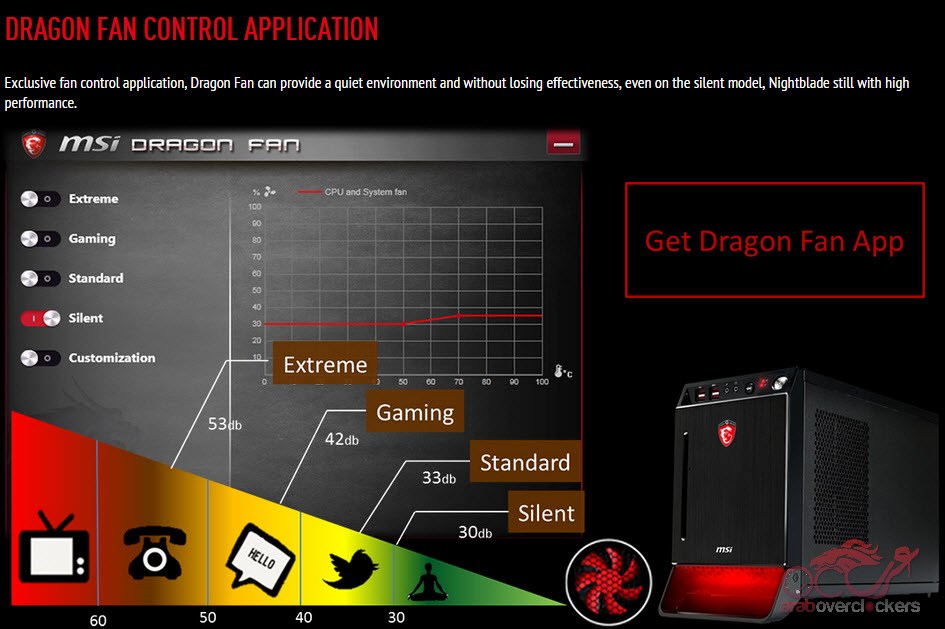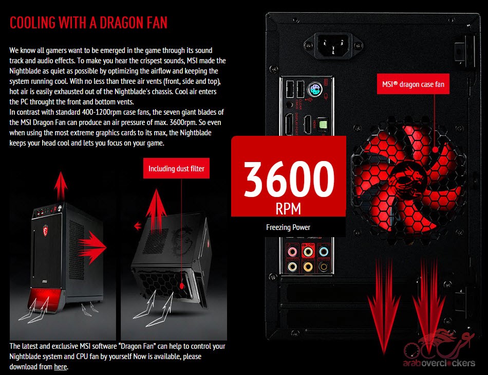 الصوت الصادر عن مثل تلك سرعة مزعج حقاً لكن MSI لم تترك الأمر دون تحكم فأرفقت برنامج خاص بها DRAGON FAN Control Application.