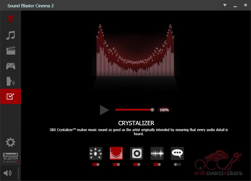 البرنامج بسيط وجيد والصوت الناتج عن هذه التوليفة من شريحة ALC1150 وبرنامج قيادة Creative نتج عنها بالفعل صوت نقي وجيد جداً لكن للأسف لم أستطع اختبار الBass الصادر من البطاقة بمضخمي الصوت الموضوعات خصيصاً ضمن مكونات البطاقة الصوتيه لدفع الأداء في هذه المنطقة تحديداً للأفضل فيما يخص سماعات الرأس فلقد ثبت لي أن سماعتي SpeedLink Medusa 5.1 قد عطب فيها الBass.