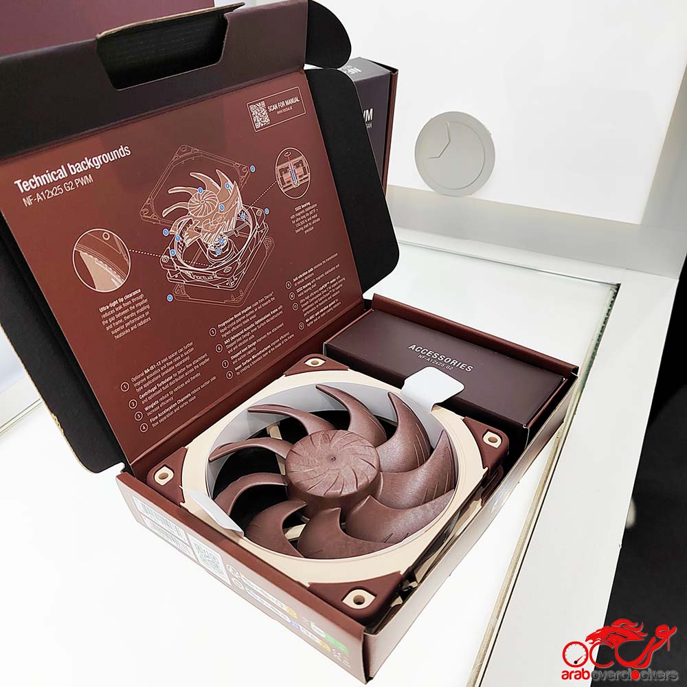 - مروحة NF-A12x25 G2 PWM تعمل بصمت تام تحت الأحمال المتوسطة.