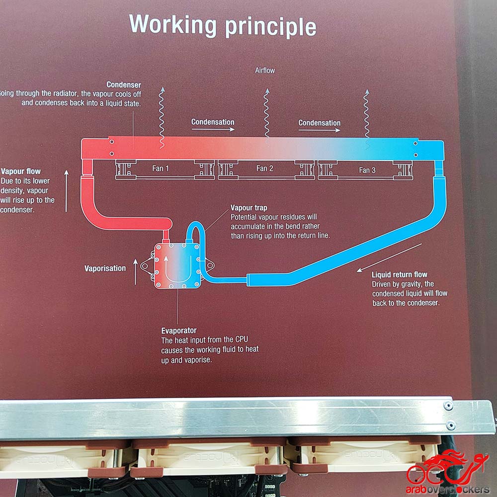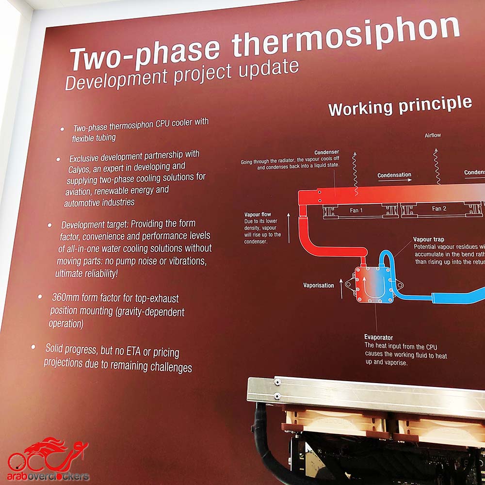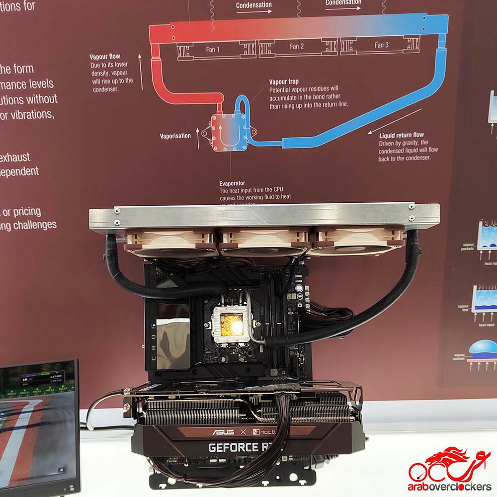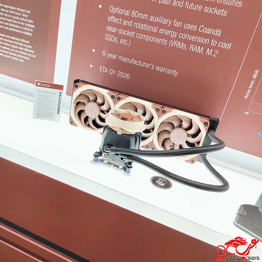 ربما يكون هذا النموذج الأولي هو الأكثر طموحاً في جناح Noctua، بل وربما في المعرض بأكمله. باستخدام تقنية Thermosiphon، تعتمد Noctua على فرق درجات الحرارة لنقل سائل التبريد دون أي أجزاء متحركة. هذا الابتكار يقلل بشكل كبير من فرص الفشل الميكانيكي، ويجعل من النظام صامتًا تمامًا.