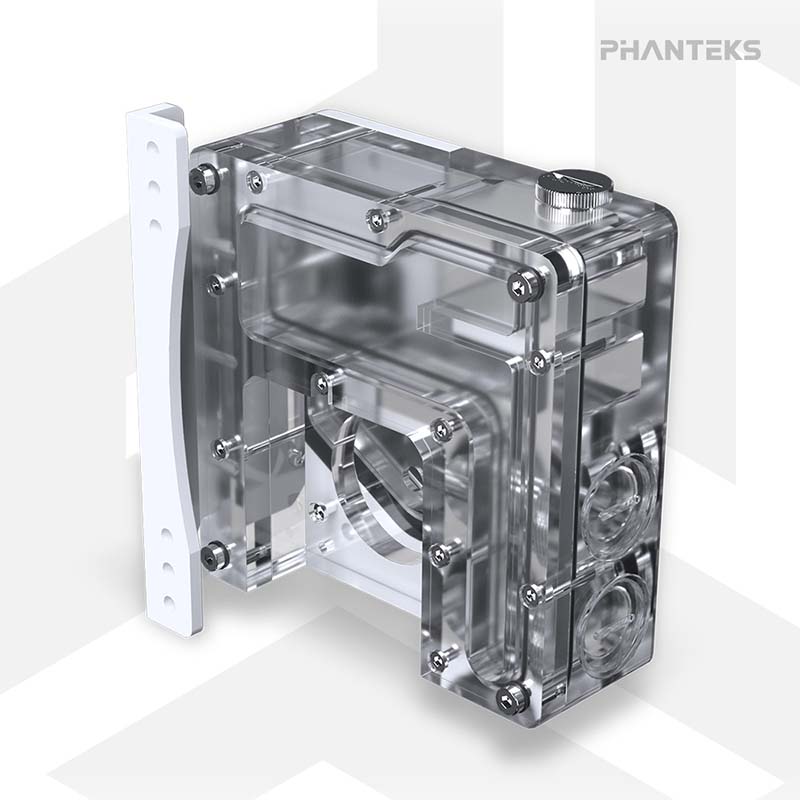 هيكل خزان مدمج مصمم لدمج مضخة DDC (المضخة غير متضمنة). أبعاده 120 × 120 مم تسمح بتركيبه مباشرةً على أي مروحة بقياس 120 مم أو 140 مم، مما يوفر مرونة لا مثيل لها في التصميم والاتجاه.