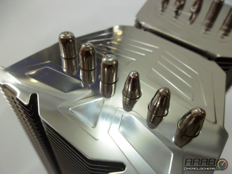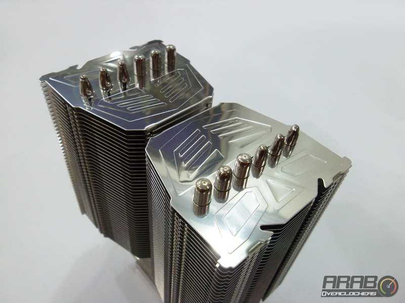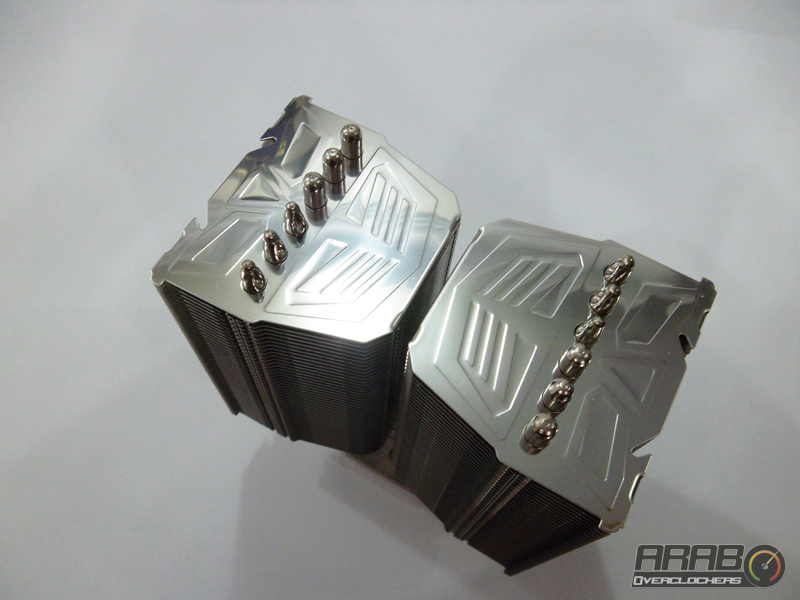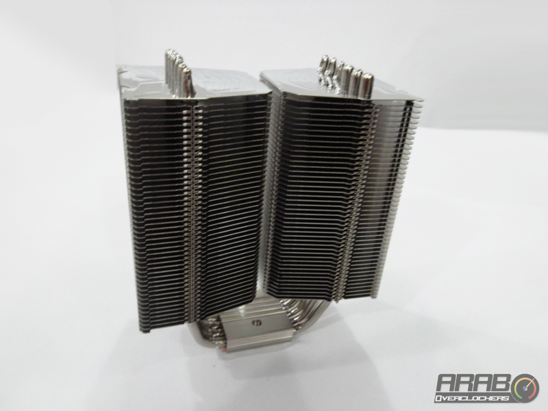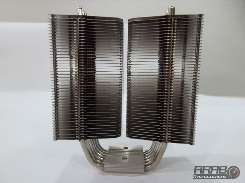 هذه هى أول نظرة لنا على المشتت وكما نرى هنا اعتماد الشركة على وجود جزئين معدنيين يتكونان من شرائح معدنية يتخللها الأنابيب لسحب الحرارة من المعالج ثم نقلها الى الشرائح ومن ثم يأتى تدفق الهواء وتشتيت الحرارة وهو تصميم متكرر ولكن نجد هنا ان الجزئين المعدنيين لا يمكن الوصول لما بينهما فهى مسافة ضئيلة فيتم تركيب المروحتين على جانبى الجزئين المعدنيين معا وهو يختلف تماماً عن تصميم البرجين المعدنيين المنفصلين لتركيب كروحة او أكثر على كل منهما على حدى مثل جيل Genisis فلمن من التصميمين ستكون الأفضلية ؟!