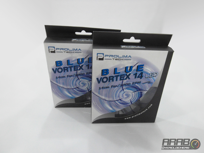 قامت الشركة بتزويدنا بمرواح Vortex بعدة مقاسات (140مم و 120مم) بالالوان الازرق والاحمر، واخترنا العرض بمرواح بمقاس 140مم باللون الازرق بسرعة 1000 لفة في الدقيقة ومعدل ضوضاء 18.1 dBA