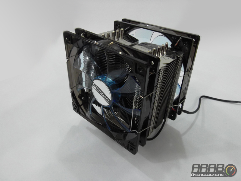 تظهر لنا الصور بالاعلى المشتت وقد تم تركيب وتثبيت مرواح Vortex 14بقطر 140مم عليه، ونرى انه يمكن تحريك المرواح للاعلى او للاسفل حسب حاجة المستخدم واللوحة المستخدمة.