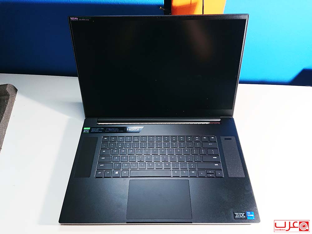 غطاء الشاشة صلب تمامًا ولا يهتز عند أدنى تأثير، كما هو الحال عند السفر. ومع هذا لا يزال من الممكن فتح الحاسب بيد واحدة فقط، فالمغناطيس يغلق الغطاء جيدًا. أكبر عيبمن وجهة نظري يكمن في ان بصمات الأصابع تترك اثار شديدة الوضوح على الهيكل بالاضافة الى الغبار ايضا. فقد تمت تغطية Razer Blade 17 بها بعد بضع دقائق فق من الاستخدام.