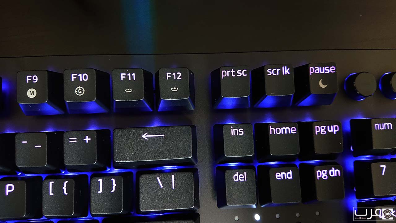 هناك أيضًا بعض مفاتيح الاختصار الإضافية المعينة كوظائف مزدوجة في صف مفاتيح F. من F9 إلى F12 ، ستجد زر Macro (يتيح لك تعيين وحدات الماكرو أثناء التنقل)، وزر وضع الألعاب (لتعطيل مفتاح Windows) وزرين لتعتيم إضاءة لوحة المفاتيح أو تفتيحها. قد تتساءل عما يعنيه رمز الهلال الموجود على مفتاح الإيقاف المؤقت. حسناً هذا الزر سيضع نظامك بالكامل في وضع السكون اذا اردت.