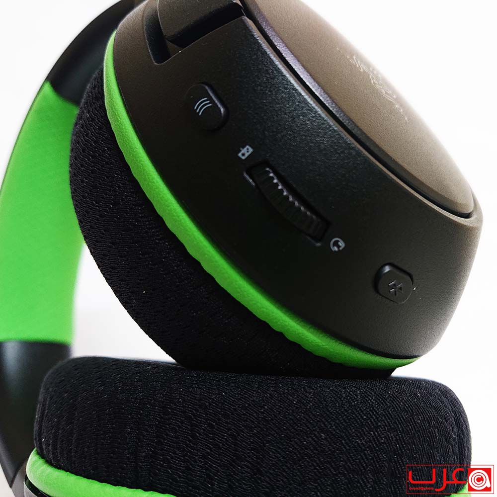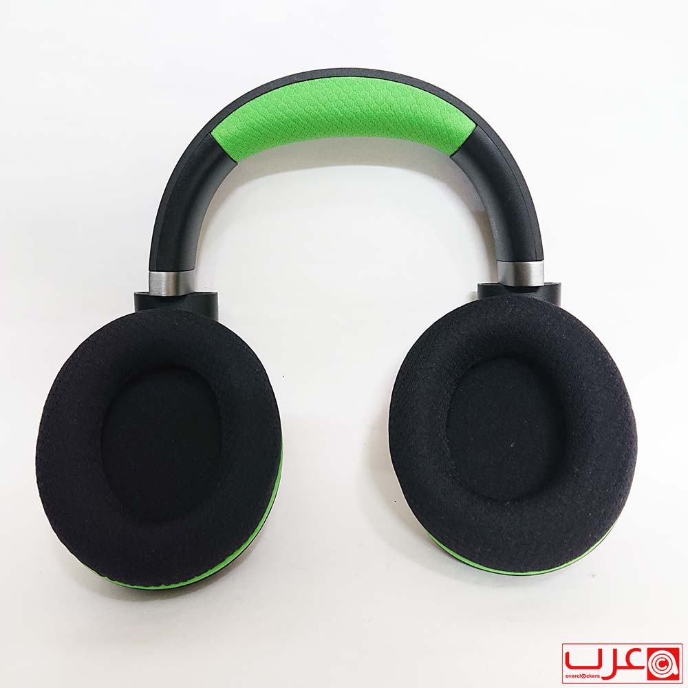 بألقِاء نظرة فاحصة على وسائد الأذن، يمكننا أن نرى أنها مصنوعة من قماش ناعم وحواف بشكل مريح للمساعدة في عزل الضوضاء والراحة. الجزء الداخلي من وسادة الأذن الذي يلامس أذنك هو مادة قماشية ناعمة تتميز باليونة ومريحة للغاية على أذنك وتحمل نقوش تتميز بها Razer.