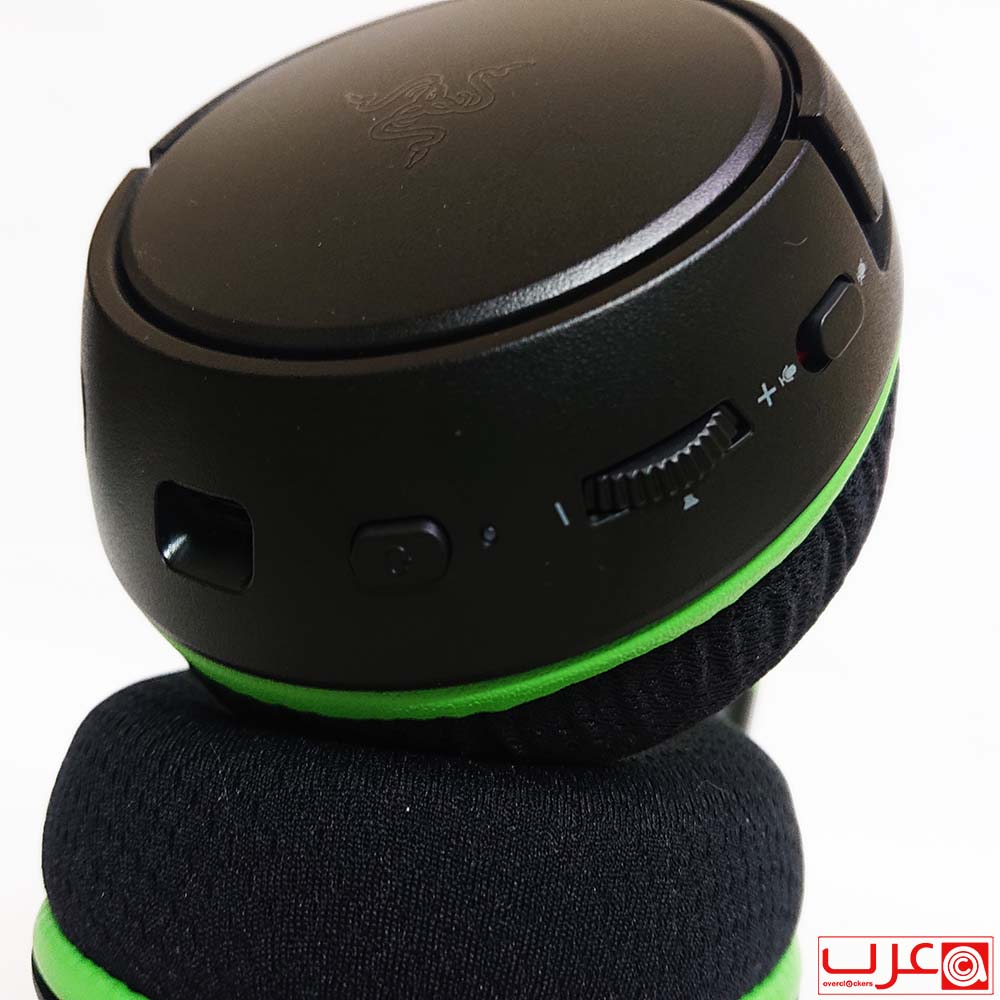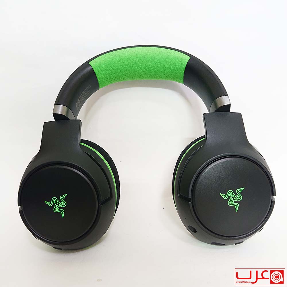 وعلى كلا السماعتان من الخارج يوجد شعار Razer يضيئ بعدة الوان RGB عن التشغيل ويتم التحكم الكامل في الاضائة عند التوصيل بالحاسب عن طريق Razer Chroma.