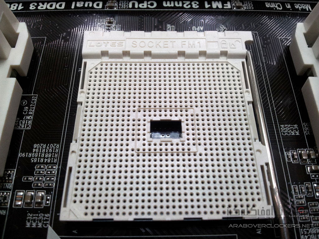 ونرى عن قرب الشكل المفصل لمقبس المعالج وهو من انتاج شركة LOTES…وبالمناسبة مقبس FM1 يحتوي على 905Pins