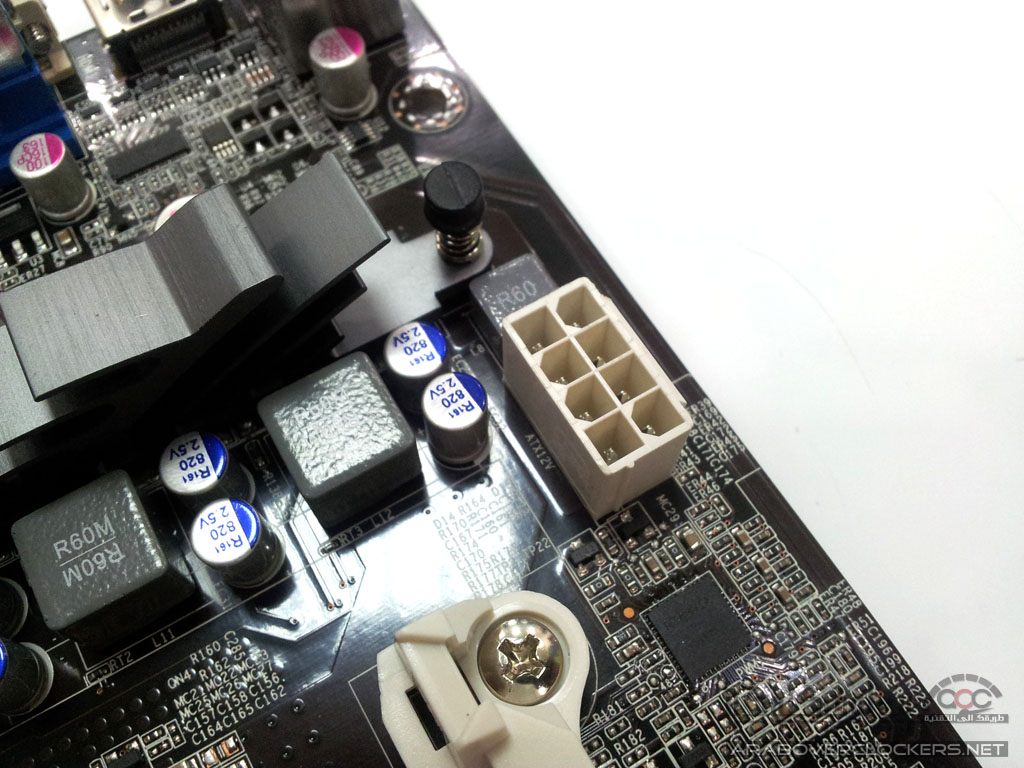 بالأعلي قليلا نرى مقبس تزويد منطقة المعالج ومنظمات الجهد بالطاقة اللازمه ربما قد يتعجب البعض لأحتواء تلك اللوحة على مقبس بعدد 8pin