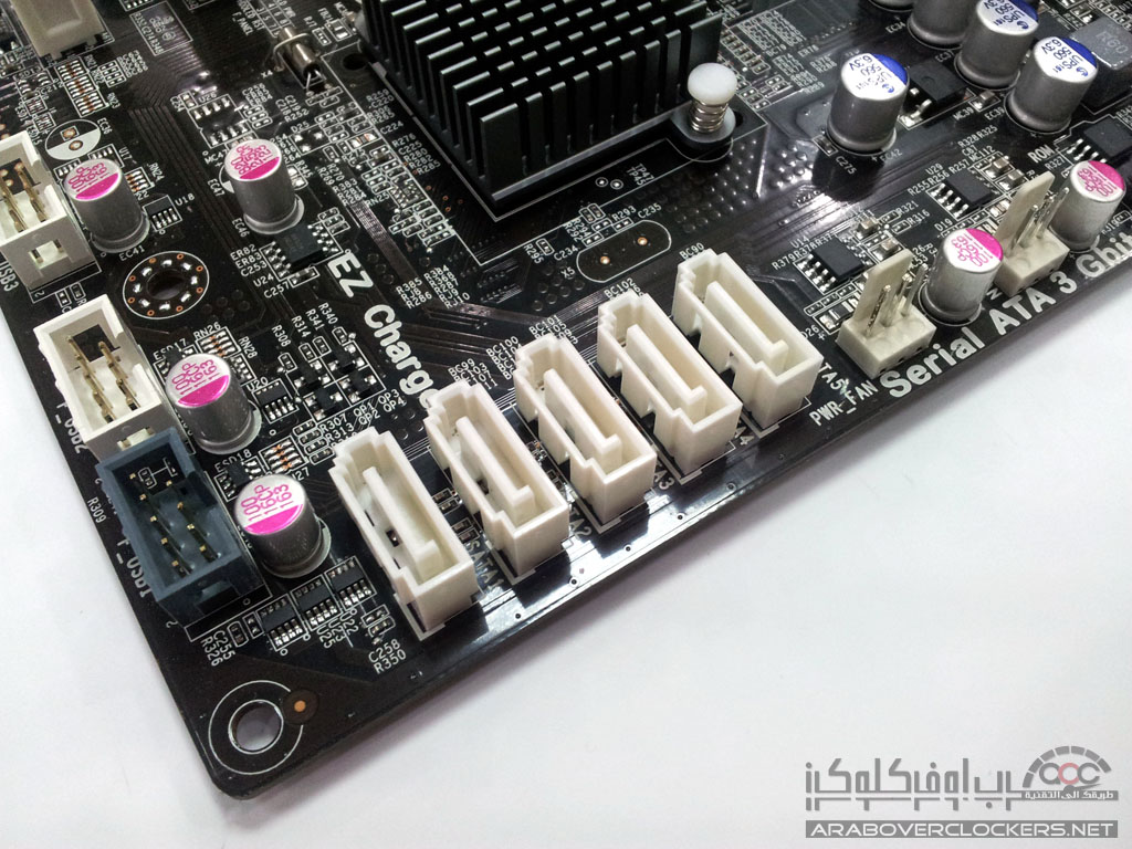 تحتوي اللوحة على خمسة منافذ SATA2.0 3GB/s فقط…وإن كنت أفضل أن أرى جميع السته منافذ التي تدعمهم تلك الشريحة