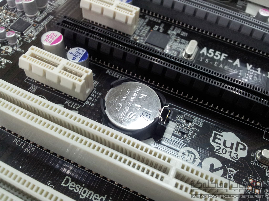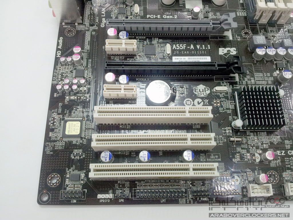اولهم مقبسين PCI-E من الجيل الثاني الأول باللون الرمادي ويعمل بسرعة 16x ومتصل مباشرة بمعالج الـ APU والأخر ذو اللون الأسود يعمل بسرعة 4x ويتصل مع الشريحة A55